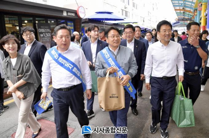 °±âÁ¤ ±¤ÁÖ±¤¿ª½ÃÀåÀÌ Ãß¼® ¸íÀýÀ» ¾ÕµÎ°í ¹Î»ý Çຸ¿¡ Àü³äÇϰí ÀÖ´Ù. ° ½ÃÀåÀº 26ÀÏ ¿ÀÀü ±¤ÁÖ ³²±¸ ºÀ¼±½ÃÀåÀ» ã¾Æ Ãß¼® ¸ÂÀÌ¿¡ ³ª¼¹´Ù. Àå¹Ù±¸´Ï¸¦ µé°í ±èº´³» ³²±¸Ã»Àå, °øÁ÷ÀÚµé°ú ÇÔ²² À庸±â¿¡ ³ª¼± ° ½ÃÀåÀº ¼ÛÆí, ¿³, µÎºÎ, »ý¼± µî Á¦¼ö¿ëǰÀ» Á÷Á¢ ±¸¸ÅÇß´Ù. ¶Ç ¿Â´©¸®»óǰ±ÇÀ» »ç¿ëÇϸç ÀüÅë½ÃÀå Ȱ¼ºÈ¿¡ ÇÔ²² ÇØÁÙ °ÍÀ» ´çºÎÇß´Ù.