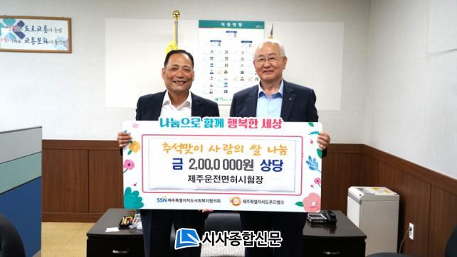 | Á¦ÁÖ¿îÀü¸éÇã½ÃÇèÀå, Ãß¼®¸ÂÀÌ »ç¶ûÀÇ ½Ò Àü´Þ 25ÀÏ Á¦ÁÖ»çȸº¹ÁöÇùÀÇȸ¿¡ 200¸¸¿ø »ó´ç ½Ò ±âŹ |
