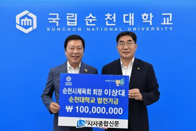 ¼øÃµ½ÃüÀ°È¸ ÀÌ»ó´ë ȸÀåÀº ¾Õ¼ Áö³ 2019³â ´ëÇйßÀü±â±Ý 1¾ï¿ø ±âŹÀ» ¾à¼ÓÇß¾ú´Ù. ÀÌÈÄ 5³â°£ ²ÙÁØÇÏ°Ô ¾à¼ÓÀ» ÁöÄÑ¿ÔÀ¸¸ç, À̹ø ÀÌõ¸¸¿øÀ» ±âŹÇÏ¿© ÃÑ 1¾ï¿øÀÇ ´ëÇйßÀüÀÚ±Ý ±âŹÀ» ÇÏ¿´´Ù.