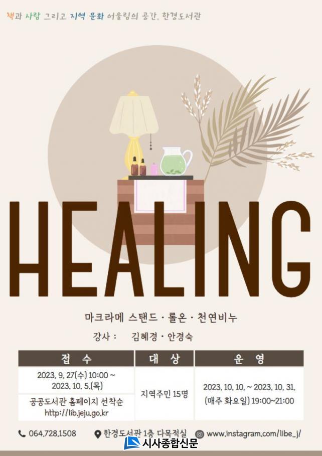 ¿î¿µ±â°£Àº 10¿ù 10ÀÏ(È)ºÎÅÍ 10¿ù 31ÀÏ(È)±îÁö ¸ÅÁÖ È¿äÀÏ ¿ÀÈÄ 7½ÃºÎÅÍ 2½Ã°£ µ¿¾È ÃÑ 4ȸ ¿î¿µµÉ ¿¹Á¤À¸·Î, ½Åû´ë»óÀº Áö¿ªÁÖ¹Î(¼ºÀÎ)À¸·Î 15¸í±îÁö ¼±Âø¼ø ¸ðÁýÇÑ´Ù. Âü¿© ½ÅûÀº 9¿ù 27ÀÏ ¿ÀÀü 10½ÃºÎÅÍ 10¿ù 5ÀϱîÁöÀ̸ç, Á¦ÁÖ °ø°øµµ¼°ü ȨÆäÀÌÁö(http://www.jeju.go.kr/lib)¿¡¼ ½ÅûÇÏ¸é µÈ´Ù.