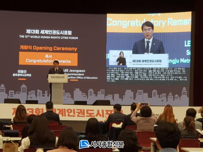ÀÌÁ¤¼± ±³À°°¨Àº Ãà»ç¸¦ ÅëÇØ ¡°»çȸ¡¤°æÁ¦¡¤¹®ÈÀû ºÒÆòµîÀÇ ÇØ°áÀº Àηù °øµ¿ÀÇ ³ë·ÂÀÌ ¿ä±¸µÇ´Â °ÍÀÌ´Ù. Çϳª µÇ´Â Èû, Áï ¿¬´ë¸¦ ÅëÇÑ Çù·Â°ú ½Çõ·ÂÀÌ ¸ð¾ÆÁ®¾ß ÇÑ´Ù¡±¸ç ¡°±¤ÁÖ±³À°Àº À뱂 °¨¼ö¼ºÀÌ Ç³ºÎÇÑ °¡½¿ µû¶æÇÑ ¼¼°è¹ÎÁֽùÎÀ» ±æ·¯³»¾î ¼¼°è¿Í ¿¬´ëÇϰí ÇÔ²² ÇൿÇÏ°Ô ÇÒ °ÍÀÌ´Ù¡±°í ¸»Çß´Ù. ÀÌ¾î ¡°Á¦13ȸ ¼¼°èÀαǵµ½ÃÆ÷·³À» ÅëÇØ À뱂 ¾Õ¿¡ ³õÀÎ ºó°ï°ú ºÒÆòµî ÇØ°áÀ» À§ÇØ »óÈ£ ¿¬´ëÇÏ´Â °è±â°¡ µÇ±â¸¦ ±â´ëÇÑ´Ù¡±°í µ¡ºÙ¿´´Ù.