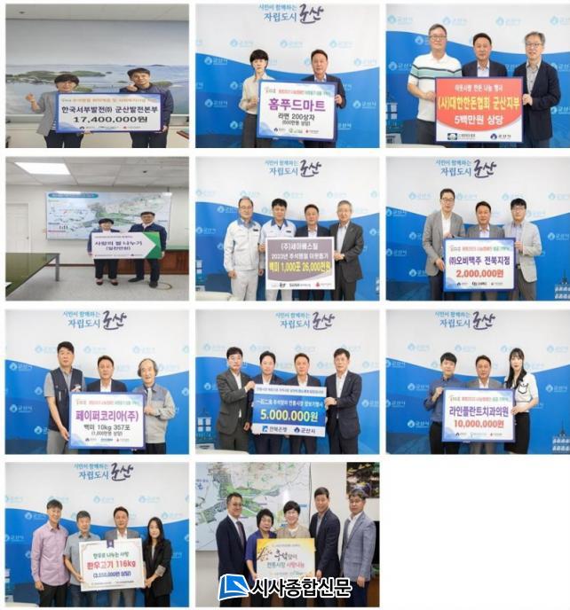 ±º»ê½Ã¿¡ µû¸£¸é ¿Ã Ãß¼®À» ¸Â¾Æ °¢ À¾¸éµ¿ ÇàÁ¤º¹Áö¼¾ÅÍ¿¡ 5õ 6¹é¿©¸¸¿ø, ¼¼¾Æº£½ºÆ¿, ÆäÀÌÆÛ ÄÚ¸®¾Æ, Çѱ¹¼ºÎ¹ßÀü ±º»ê¹ßÀüº»ºÎ µî 14°³ ±â¾÷ ¹× ´Üü¿¡¼ 1¾ï 2õ¿©¸¸¿ø, ½Ã °£ºÎ °ø¹«¿ø°ú ½Ã ÁöÁ¤±âŹ±Ý µîÀ¸·Î 4õ 4¹é¿©¸¸¿øÀÇ ¼º±Ý¡¤Ç°ÀÌ Àü´ÞµÆ´Ù.