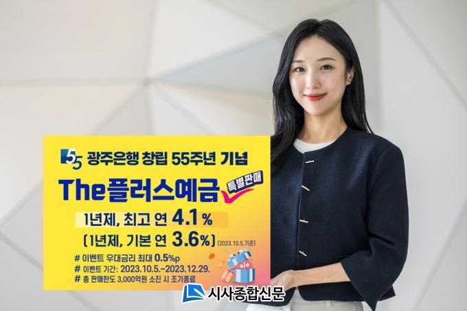| ±¤ÁÖÀºÇà, ⸳ Á¦55Áֳ⠱â³ä ¡¸TheÇ÷¯½º¿¹±Ý¡¹ 3,000¾ï¿ø Ưº° ÆÇ¸Å ½Ç½Ã 1³âÁ¦ ±âº» ¿¬ 3.6%, ÃÖ°í ¿¬ 4.1% Àû¿ë, ÃÑ Çѵµ 3,000¾ï¿ø ¼ÒÁø ½Ã Á¶±â Á¾·á