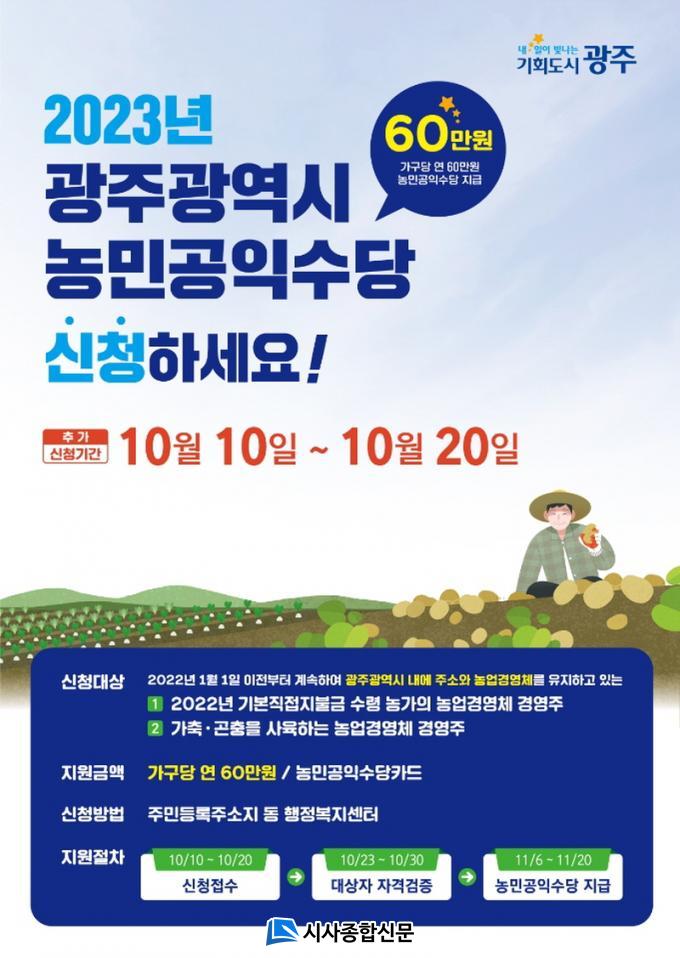 ±¤ÁÖ±¤¿ª½Ã(½ÃÀå °±âÁ¤)´Â ³ó¹Î°øÀͼö´çÀ» ¹Ìó ½ÅûÇÏÁö ¸øÇÑ ³ó°¡¸¦ Áö¿øÇϱâ À§ÇØ 10ÀϺÎÅÍ 20ÀϱîÁö 10Àϰ£ Ãß°¡ Á¢¼ö¸¦ ÁøÇàÇÑ´Ù.