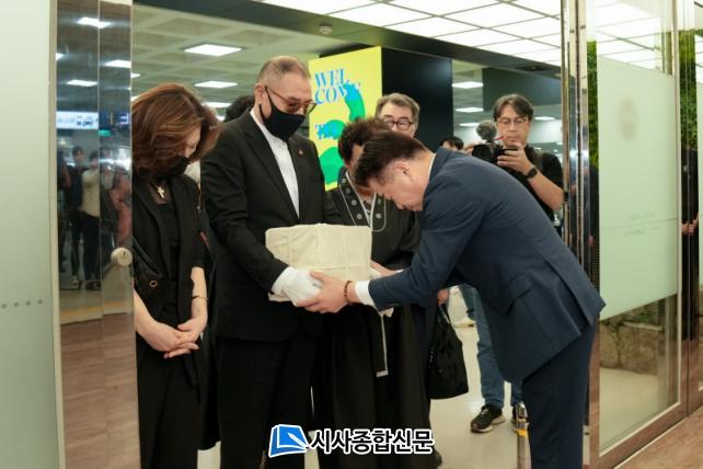 Á¦ÁÖÆ¯º°ÀÚÄ¡µµ¿Í Á¦ÁÖ4¡¤3ÆòÈÀç´ÜÀº 5ÀÏ ¿ÀÀü 11½Ã 30ºÐ °íÀÎÀÇ °íÇâÀÎ Á¶ÃµÀ¾ ºÏÃÌÆ÷±¸ ÀÏ¿ø¿¡¼ ¡®´ëÀü °ñ·É°ñ ¹ß±¼À¯ÇØ ½Å¿øÈ®ÀÎ 4¡¤3 Èñ»ýÀÚ ºÀȯ½Ä¡¯À» °ÅÇàÇß´Ù. ´ëÀü °ñ·É°ñ¿¡¼ ¹ß±¼µÈ À¯Çذ¡ 74³â Àü Çà¹æºÒ¸íµÈ °í(ͺ) ±èÇÑÈ« ´ÔÀ¸·Î È®Àεʿ¡ µû¶ó ¼¼Á¾Ã߸ðÀÇÁý¿¡ ¾ÈÄ¡µÈ °íÀÎÀÇ À¯Çظ¦ À̳¯ Ç×°øÆíÀ¸·Î Á¦ÁÖ·Î ºÀÈ¯ÇØ¿Ô´Ù.