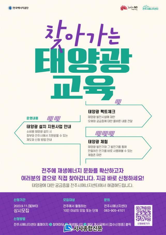 ±³À°Àº ¡âž籤 ÆÑƮüũ ¡âž籤 ¼³Ä¡ »ç·Ê ¡âž籤 ¼³Ä¡ Áö¿ø »ç¾÷ ¾È³» ¡âž籤 üÇèÁ¸ÀÇ ÃÑ 4°¡Áö ³»¿ëÀ¸·Î ±¸¼ºµÈ´Ù. Âü¿©¸¦ Èñ¸ÁÇÏ´Â ¸ðÀÓ ¶Ç´Â ´Üü´Â ÀüÁֽÿ¡³ÊÁö¼¾ÅÍ ´©¸®Áý(www.eturn.or.kr)À» ÅëÇØ ½ÅûÇÒ ¼ö ÀÖÀ¸¸ç, ±³À° ´ã´çÀÚ°¡ ½Åû ³»¿ëÀ» È®ÀÎÇÑ ÈÄ À¯¼± ¿¬¶ôÀ» ÅëÇØ ±³À° ÀϽø¦ È®Á¤ÇÏ°Ô µÈ´Ù.