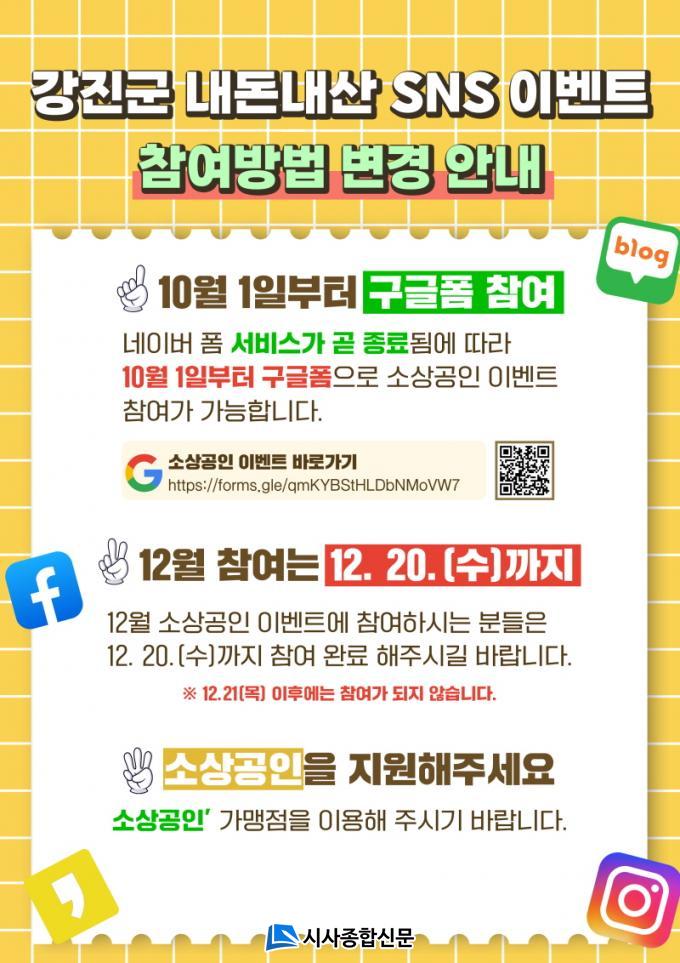 °Áø¿ø °Áø±º¼ö´Â ¡°À̺¥Æ®¸¦ ÅëÇØ Áö¿ª ¼Ò»ó°øÀÎÀÇ »óǰÀ̳ª ¼ºñ½º°¡ SNS¿¡ ¸¹ÀÌ ³ëÃâµÅ ¿Â¶óÀÎ È«º¸ È¿°ú¸¦ ²ø¾î¿Ã¸®°í, Áö¿ª °æÁ¦ Ȱ¼ºÈ¸¦ À§ÇØ ¼Ò»ó°øÀΰú ¼ÒºñÀÚ ¸ðµÎ¿¡°Ô µµ¿òÀÌ µÉ °ÍÀ¸·Î ±â´ëÇÑ´Ù¡±¸ç ¡°°Áø ³»µ·³»»ê SNS À̺¥Æ®¿¡ Àû±Ø Âü¿©ÇØ ÁÖ±æ ¹Ù¶õ´Ù¡±°í ¸»Çß´Ù.