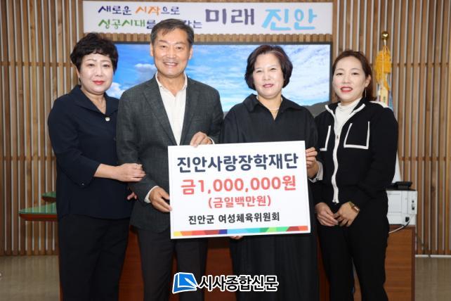 [½Ã»çÁ¾ÇսŹ® = ¿À½ÂÅà ±âÀÚ] Áø¾È±º ¿©¼º üÀ°À§¿øÈ¸(ȸÀå Á¤Á¡¼ø)°¡ Áö³ 10ÀÏ Áø¾È»ç¶ûÀåÇÐÀç´Ü(ÀÌ»çÀå ÀüÃἺ)¿¡ ÀåÇÐ±Ý 100¸¸¿øÀ» Àü´ÞÇß´Ù.