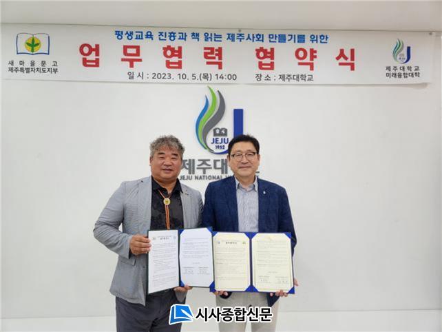 [½Ã»çÁ¾ÇսŹ® = °í¼º¹Î ±âÀÚ] Á¦ÁÖ´ëÇб³ ¹Ì·¡À¶ÇÕ´ëÇÐ(ÇÐÀå Çöⱸ)°ú »õ¸¶À»¹®°íÁ¦ÁÖµµÁöºÎ(ȸÀå À¯Ã¶¼ö)´Â 5ÀÏ Á¦ÁÖ´ë¿¡¼ Æò»ý±³À° ÁøÈï°ú Ã¥ Àд Á¦ÁÖ»çȸ ¸¸µé±â¸¦ À§ÇÑ ¾÷¹«Çù¾àÀ» ü°áÇÏ¿´´Ù.
