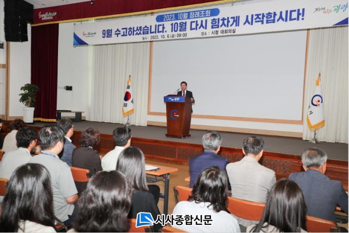 Á¤ÀÎÈ ±¤¾ç½ÃÀåÀº ¡°°øÁ÷ÀÚÀÇ ½Ã¼±Àº Ç×»ó ½Ã¹ÎÀ» ÇâÇØ ÀÖ¾î¾ß ÇÑ´Ù¡±¸ç ¡°½Ã¹ÎÀÇ ÀÔÀå¿¡¼ ±× ¼ö¿ä°¡ ¹«¾ùÀÎÁö ÆÄ¾ÇÇÏ°í »óÈ£¼ÒÅëÇØ¾ß ÇÑ´Ù¡±°í ¸»Çß´Ù. ÀÌ¾î ¡°½Ã¹ÎµéÀ» À§ÇØ Ç×»ó ³ë·ÂÇÏ°í ¸ÃÀº¹Ù ¾÷¹«¿¡ ¼º½ÇÈ÷ ÀÓÇØ ÁØ °øÁ÷ÀÚ ¿©·¯ºÐ²² Ç×»ó °¨»çµå¸°´Ù¡±°í µ¡ºÙ¿´´Ù.