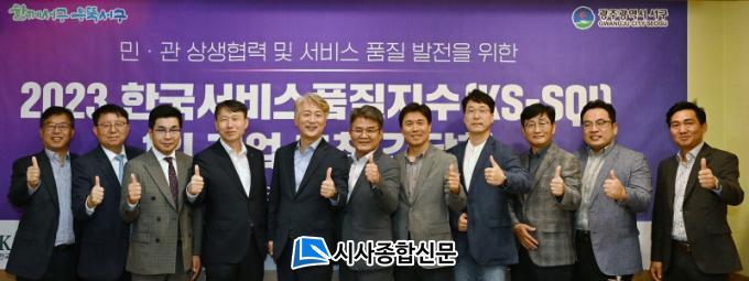 ±¤ÁÖ±¤¿ª½Ã ¼±¸(±¸Ã»Àå ±èÀ̰)´Â Çѱ¹¼ºñ½ºÇ°ÁúÁö¼ö(KS-SQI) ¡®1À§ ±â¾÷¡¯ÀÎ »ï¼ºÀüÀÚ¼ºñ½º, ½ÅÇÑÀºÇà, Çö´ë¿ÀÀϹðÅ©, KB±¹¹ÎÄ«µå, SKÅÚ·¹ÄÞ, ¸°³ªÀÌÄÚ¸®¾Æ(ÁÖ), ¿¡½º¿ø ±¤ÁÖ‧È£³²º»ºÎÀåµé°ú 10ÀÏ ¿ÀÂù °£´ãȸ¸¦ °®°í ÇâÈÄ ±³·ù ¹× ¹ßÀü¹æÇâÀ» ³íÀÇÇß´Ù°í ¹àÇû´Ù.