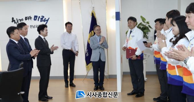 ¹«¾ùº¸´Ù Àü³²±³À°Ã»°ú Áøµµ±¹¾Ç°í°¡ ³²µµÀÇ Á¤¼¸¦ ¹Ý¿µÇØ ¸¸µç ½Ã»ó°îÀÌ À̹ø üÀü ¼±¼ö ÀÔÀå½Ä¿¡¼ °ø½ÄÀûÀ¸·Î °ø°³µÉ ¿¹Á¤ÀÌ¾î¼ °ü½ÉÀ» ¸ðÀ¸°í ÀÖ´Ù. ´õºÒ¾î Àü³²±³À°Ã» ÇöÀåÁö¿ø´ÜÀº ´ëȸ ±â°£ ÇöÀå °÷°÷¿¡¼ Àü³² Áö¿ª È«º¸´Â ¹°·Ð, ¼±¼ö´Ü°ú °ü¶÷°´ ÆíÀǸ¦ À§ÇØ ÈûÀ» º¸ÅÅ °èȹÀÌ´Ù.