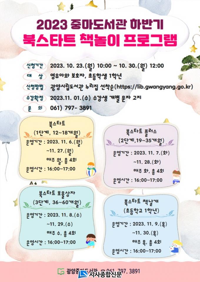 ¼ö°·á¿Í Àç·áºñ´Â ¹«·áÀÌ´Ù. ¼ö° ½ÅûÀº ¿À´Â 23ÀÏ ¿ÀÀü 10½ÃºÎÅÍ 30ÀϱîÁö ±¤¾ç½Ã¸³µµ¼°ü ´©¸®ÁýÀ» ÅëÇØ °¡´ÉÇϸç 1´Ü°èºÎÅÍ 3´Ü°è±îÁöÀÎ ¿µÀ¯¾Æ¿Í º¸È£ÀÚ´Â ¹Ýµå½Ã º¸È£ÀÚ À̸§À¸·Î, 4´Ü°èÀÎ ÃʵîÇб³ 1ÇгâÀº ¼ö°»ý À̸§(¾ÆÀ̵ð)À¸·Î ½ÅÃ»ÇØ¾ß ÇÑ´Ù. ´Ü, º¸´Ù ¸¹Àº ¿µÀ¯¾Æ¿Í º¸È£ÀÚ°¡ ÇÁ·Î±×·¥¿¡ Âü¿©ÇÒ ¼ö ÀÖµµ·Ï 2023³â »ó¹Ý±â ÇÁ·Î±×·¥ Âü°¡ÀÚ´Â ÇϹݱ⿡´Â ½ÅûÇÒ ¼ö ¾ø´Ù.
