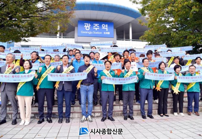 °±âÁ¤ ±¤ÁÖ½ÃÀåÀº ¡°°È°í ½ÍÀº ±¤ÁÖ¸¦ À§ÇØ Å« °á´ÜÀ» ÇØÁֽб¤ÁÖ½ÃÀÇȸ¿Í ´ëÇÑÁÖÅðǼ³Çùȸ, ¿Á¿Ü±¤°íÇùȸ¿¡ Áø½ÉÀ¸·Î °¨»çµå¸°´Ù¡±¸ç ¡°ºÒ¹ýÇö¼ö¸·Àº ½Ã¹ÎÀÇ ¾ÈÀüÀ» À§ÇùÇÏ°í µµ½ÉÀ» ȥŹÇÏ°Ô ¸¸µç´Ù. °È°í ½Í°í ±ú²ýÇÑ ±¤ÁÖ¸¦ ¸¸µé°íÀÚ ÇÏ´Â °á½ÉµéÀÌ ¸ð¿© ÀÌ ÀÚ¸®°¡ °¡´ÉÇß´Ù. ºÒ¹ýÇö¼ö¸· ±ÙÀý¿¡ Àúµµ ÃÖ¼±À» ´ÙÇϰڴ١±°í ¹àÇû´Ù.
