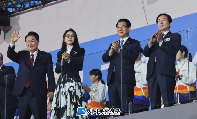 °³È¸½ÄÀå¿¡ µé¾î¼± ¼ºÈ´Â °æ±âÀå Æ®·¢¿¡¼ 4¸íÀÇ ÁÖÀÚ¸¦ °ÅÃÄ ÃÖÁ¾ ÁÖÀÚ¿¡°Ô Àü´ÞµÆ´Ù. º£ÀÏ¿¡ °¡·ÁÁ³´ø ÃÖÁ¾ ÁÖÀÚ´Â Áö³ÇØ Àü±¹Ã¼Àü À°»ó 4°ü¿Õ ¹è°ÇÀ²À̾ú´Ù. 5¸íÀÇ ÁÖÀÚ°¡ ÇÔ²² ÆîÄ£ ·¹ÀÌÀúºÒ²É¼î ¼ºÈ Á¡È ÆÛÆ÷¸Õ½º´Â ¿ìÁÖ °³¹ßÀÇ ÀÚÁ¸½ÉÀÎ ³ª·ÎÈ£°¡ ¹ß»çµÇ°í ¿ìÁÖ·Î ºñ»óÇÏ´Â ¸ð½ÀÀ» Çü»óÈÇÑ µå·Ð¼î, ÆøÁ×À¸·Î ¿¬ÃâµÅ °üÁßÀÇ Åº¼ºÀÌ À̾îÁ³´Ù. ¼ºÈ Á¡È¸¦ ³¡À¸·Î °ø½ÄÇà»ç°¡ ¸¶¹«¸®µÇ°í, Àå¹ÎÈ£, ¼Û°¡ÀÎ, ¹ÚÁöÇö, ´ÙÀ̳ª¹Íµà¿À, ¿¡¹ö±Û·Î¿ì µî ´Ùä·Î¿î ÄÉÀÌÆË(K-POP) °ø¿¬ÀÌ ÆîÃÄÁ³´Ù.