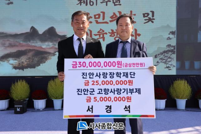 [½Ã»çÁ¾ÇսŹ® = ¿À½ÂÅà ±âÀÚ] Áø¾È»ç¶ûÀåÇÐÀç´Ü(ÀÌ»çÀå ÀüÃἺ)¿¡ ¼º±Ý ±âŹÀÌ À̾îÁö°í ÀÖ´Â °¡¿îµ¥ Áö³ 12ÀÏ ¼°æ¼®(Àç°æÁø¾È±º¹Îȸ »óÀÓ°í¹®)¾¾¿Í ¼º¼öÅÂ(îñ ¼º±Õ°ü ºÎ°üÀå)¾¾°¡ °¢°¢ ÈÄ¿ø±Ý 2,500¸¸¿ø°ú 400¸¸¿øÀ» Àü´ÞÇß´Ù.