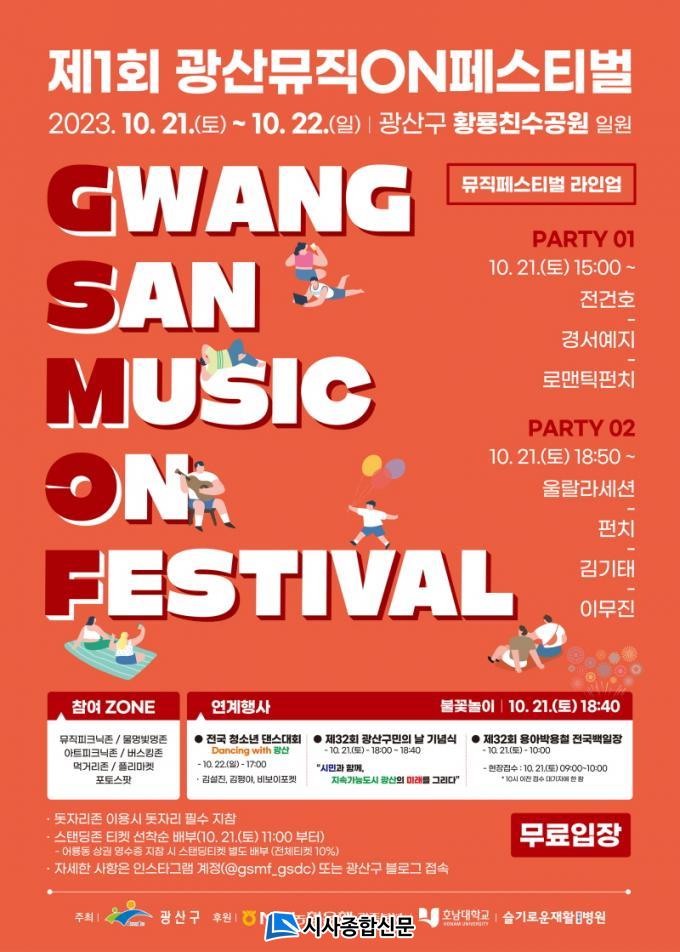 22ÀϱîÁö ÀÌÆ²°£ ÆîÃÄÁö´Â ¡®±¤»ê¹ÂÁ÷ONÆä½ºÆ¼¹ú¡¯Àº ±¤»êÀÇ »õ·Î¿î ¸Å·Â°ú »ýµ¿°¨ ÀÖ´Â µµ½Ã À̹ÌÁö¸¦ ¾Ë¸®°í Áö¿ª°æÁ¦¿¡ Ȱ·ÂÀ» ºÒ¾î³Ö´Â À½¾Ç Áß½ÉÀÇ ÃàÁ¦·Î ±âȹµÆ´Ù. ´ëÇ¥ ±¸È£´Â ½Ã¹Î °ø¸ð¸¦ ÅëÇØ ¼±Á¤ÇÑ ¡®Healing Hi, Feeling High!(Èú¸µ ÇÏÀÌ, Çʸµ ÇÏÀÌ!)¡¯. ³ôÀº °¡À» ÇÏ´Ã ¾Æ·¡, ÀÚ¿¬ ¼Ó¿¡¼ ÈÞ½ÄÇϰí, À½¾ÇÀ» ¿Â¸öÀ¸·Î ´À³¢¸ç ¸ðµÎ ´Ù ÇÔ²² ÃàÁ¦¸¦ Áñ°Ì°í, ½Å³ª°Ô Áñ±âÀÚ´Â Àǹ̴Ù.