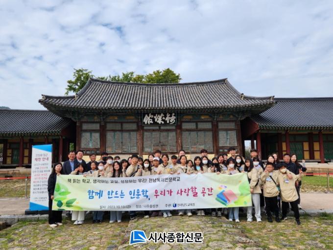 Àü¶ó³²µµ±³À°Ã»ÀÌ °ü³» 6Çгâ ÇлýµéÀ» ´ë»óÀ¸·Î ¿î¿µÇÏ´Â Àü³²µ¶¼Àι®Çб³´Â µ¶¼¸¦ ±â¹ÝÀ¸·Î ÇÑ Åä·Ð¡¤ÇöÀå Ž¹æ ÇÁ·Î±×·¥À¸·Î, Áö³ 5¿ùºÎÅÍ ÇÑ ´Þ¿¡ ÇÑ ¹ø ÁøÇàµÇ°í ÀÖ´Ù. 10¿ùÀÇ Àι®Çбæ Ž¹æÀº Ã¥À» ¸Å°³·Î ÇÑ Áö½Ä¡¤°æÇèÀÇ È®ÀåÀ» ²ÒÇÏ°í ¡®Çб³ ¹Û ¹è¿òÅÍ¡¯·Î ¼¼»óÀ» º¸´Â ¾È¸ñ°ú Æ÷¿ë·ÂÀ» °®Ãá ÀÎÀç·ÎÀÇ ¼ºÀåÀ» µ½±â À§ÇØ ±âȹµÆ´Ù.
