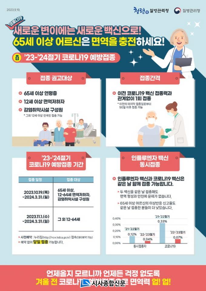 Äڷγª19 ¹é½Å Á¢Á¾Àº ½Ã°£ °æ°ú¿¡ µû¸¥ ¸é¿ª°¨¼Ò·Î ÀÎÇØ ÁÖ±âÀû Á¢Á¾ÀÌ ÇÊ¿äÇϸç À̹ø Á¢Á¾Àº ½Å±Ô º¯ÀÌ¿¡ ´ëÀÀÇØ »õ·Ó°Ô °³¹ßµÈ XBB.1.5 ´Ü°¡ ¹é½ÅÀ¸·Î Á¢Á¾À» ÁøÇàÇÑ´Ù.