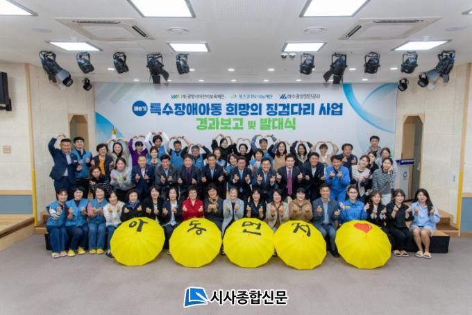 À̳¯ ¹ß´ë½Ä¿¡´Â Á¤ÀÎÈ ±¤¾ç½ÃÀå, ÀÌöȣ ±¤¾çÁ¦Ã¶¼Ò ÇàÁ¤ºÎ¼ÒÀå, ¼¿µ¹è ±¤¾ç½ÃÀÇÀå, ¹Ú¼ºÇö ¿©¼ö±¤¾çÇ׸¸°ø»ç »çÀå ¹× Çкθð¿Í ±¤¾çÁ¦Ã¶¼Ò ÀÚ¿øºÀ»çÀÚµéÀ» ºñ·ÔÇÑ ¾à 100¿©¸íÀÌ Âü¼®Çß´Ù. 2018³âºÎÅÍ ½ÃÀÛÇØ ¿ÃÇØ 6±â¸¦ ¸ÂÀÌÇÑ Èñ¸ÁÀÇ Â¡°Ë´Ù¸® »ç¾÷Àº ±¤¾çÁ¦Ã¶¼ÒÀÇ ÁÖ°üÀ¸·Î µµ¿òÀÌ ÇÊ¿äÇÑ ¸¸ 12¼¼ ÀÌÇÏ Æ¯¼öÀå¾Ö¾ÆÀ̵鿡°Ô ´Ù¾çÇÑ Ä¡À¯ ÇÁ·Î±×·¥À» ÁøÇàÇÏ´Â »ç¾÷ÀÌ´Ù.