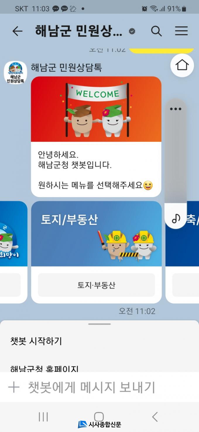 Á¢¼ÓÇÏ·Á¸é ÈÞ´ëÆù īī¿ÀÅå¿¡¼¡®Çس²±º ¹Î¿ø»ó´ãÅ塯À» °Ë»öÇÏ¿© Ä£±¸¸ñ·Ï¿¡ Ãß°¡ÇÑ µÚ¡®Ãªº¿ ½ÃÀÛÇϱ⡯ ¸Þ´º¸¦ ´©¸¥ ÈÄ ¿øÇÏ´Â ºÐ¾ß¸¦ ´Ü°èÀûÀ¸·Î Ŭ¸¯ÇÏ¿© ³»¿ëÀ» È®ÀÎÇϰųª ã°í ½ÍÀº ³»¿ëÀ» Á÷Á¢ ÀÔ·ÂÇÏ¿© ´äº¯À» È®ÀÎÇÒ ¼ö ÀÖ´Ù. 꺿 ¼ºñ½º·Î ÇØ°áÇÒ ¼ö ¾ø´Â »çÇ×Àº ´ã´çÁ÷¿ø Àüȵµ ¿¬°áµÉ ¼ö ÀÖµµ·Ï ±â´ÉÀ» Ãß°¡Çß´Ù.