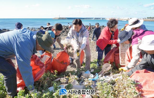 À̳¯ Çà»ç¿¡´Â ¿À¿µÈÆ Áö»ç¸¦ ºñ·ÔÇØ Á¦ÁÖµµ ¼Ò¼Ó 5±Þ ÀÌ»ó °øÁ÷ÀÚ, Á¦ÁÖµµÇسàÇùȸ, ¸ð½½Æ÷¼öÇù, Áö¿ª ¼±»çÁ÷¿ø µî 300¿© ¸íÀÌ Âü¼®ÇØ Ã»Á¤Á¦ÁÖÀÇ ÀÚ¿¬°ú ¸¶À»¾îÀåÀ» ÁöŰ´Â ÀÏ¿¡ ÈûÀ» º¸ÅÉ´Ù. À̳¯ Ä·ÆäÀο¡¼ ¹Ù´Ù ¼Ó¿¡ ½×ÀÎ ¾²·¹±â´Â ÇØ³àµéÀÌ Àá¼öÇØ °ÇÁ®¿Ã¸®°í, ´Ù¸¥ Âü¼®ÀÚµéÀº ÀÏ´ë ÇØ¾È°¡¸¦ °ÉÀ¸¸ç Æó¾î±¸, ÆóÇÃ¶ó½ºÆ½, ½ºÆ¼·Îǰ µîÀ» ÁÝ´Â µî °¢Á¾ ÇØ¾ç¾²·¹±â 300¿© Æ÷´ë¸¦ ¼ö°ÅÇß´Ù.