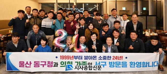 ±èÀ̰ ¼±¸Ã»ÀåÀº ¡°ÇüÁ¦µµ½Ã ¿ï»ê µ¿±¸ °¡Á·µéÀÇ ¹æ¹®À» Áø½ÉÀ¸·Î ȯ¿µÇÑ´Ù¡±¸ç ¡°ÀæÀº ¸¸³²°ú ¼ÒÅëÀ¸·Î ¾ÆÀ̵ð¾î¸¦ ³ª´©°í ±³°¨ÇÏ¸ç ¾ç µµ½ÃÀÇ °øµ¿¹ßÀüÀ» À§ÇØ ³ë·ÂÇÏÀÚ¡±°í ¸»Çß´Ù. ¼±¸´Â ¿ï»ê µ¿±¸ÀÇ ¹ßÀüÀ» ±â¿øÇÏ´Â Àǹ̷Π±èÁ¾ÈÆ µ¿±¸Ã»Àå¿¡°Ô ¿îµ¿È¸¦ ¼±¹°Çß´Ù.
