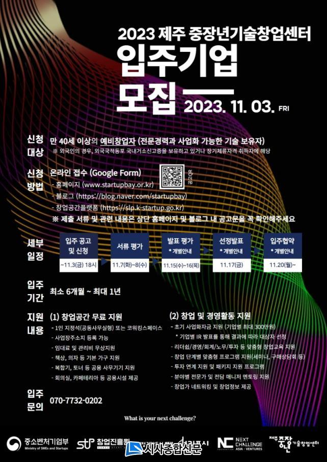 ÀÚ¼¼ÇÑ °ø°í ³»¿ë°ú ½Åû ¾ç½ÄÀº ½ºÅ¸Æ®¾÷º£ÀÌ È¨ÆäÀÌÁö (https://startupbay.or.kr) ȤÀº K-Startup â¾÷°ø°£Ç÷§Æû, Æ÷½ºÅÍ ³»¿¡ QRÄڵ带 ÅëÇØ È®ÀÎ °¡´ÉÇÏ¸ç ¼±ÍÆ÷½Ã °æÁ¦ÀÏÀÚ¸®°ú(064-760-2812) ¶Ç´Â Á¦ÁÖ ÁßÀå³â±â¼úâ¾÷¼¾ÅÍ(070-7732-0202)·Î ÀüÈ ¹®Àǵµ °¡´ÉÇÏ´Ù.