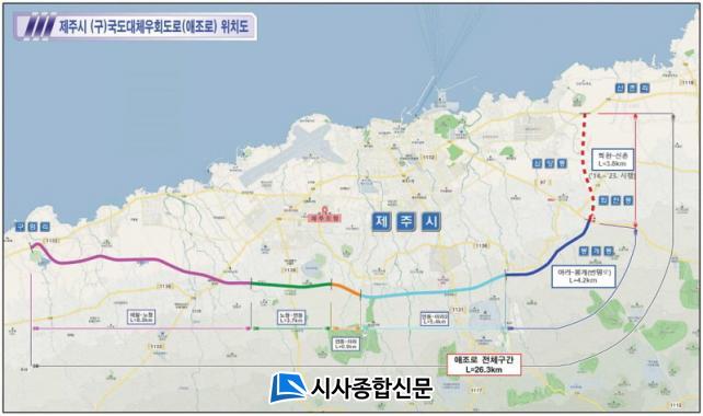 ÇÑÆí, Á¦ÁÖµµ´Â Á¦Áֽà µµ½ÉÁö¿ª ±³Åë·®À» ºÐ»êÇÏ°í ±³ÅëÈ¥ÀâÀ» °³¼±Çϱâ À§ÇØ ±¸±¹µµ ´ëü¿ìȸµµ·ÎÀÎ ¾ÖÁ¶·Î °³¼³°ø»ç¸¦ 1999³âºÎÅÍ ÃßÁøÇØ ¿Ô´Ù. Àüü 26.3§°¸¦ 6°³ ±¸°£À¸·Î ³ª´² 1±¸°£¿¡¼ 5±¸°£±îÁö 22.1§° µµ·Î °Ç¼³¿¡ »ç¾÷ºñ 2,988¾ï ¿øÀ» ÅõÀÔÇßÀ¸¸ç 2019³â 10¿ù °ø»ç¸¦ ¸¶¹«¸®Çß´Ù.