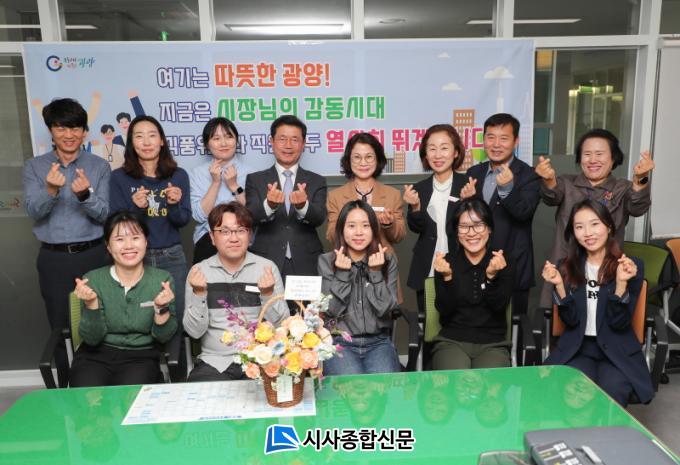 ¡®±¤¾ç½Ã°¡ ÀÀ¿øÇÕ´Ï´Ù¡¯´Â °Ý¹«¿¡ ½Ã´Þ¸®´Â Á÷¿øµéÀ» ÀÀ¿øÇϱâ À§ÇØ ½ÃÀåÀÌ ºÎ¼¸¦ ¹æ¹®Çؼ Á÷¿øµéÀ» °Ý·ÁÇϰí, ½ÃÀå°ú Á÷¿ø °£ ÀÚÀ¯·Î¿î ¼ÒÅëÀÇ ½Ã°£À» °®±â À§ÇØ ¸¶·ÃµÆ´Ù. À̳¯ Á¤ ½ÃÀåÀº ±¤¾ç K-POP Æä½ºÆ¼¹ú µî ¹Ù»Û ÀÏÁ¤¿¡µµ Á÷Á¢ °£½ÄÀ» µé°í º¸°Ç¼Ò ½ÄǰÀ§»ý°ú¸¦ ã¾Æ°¡ ½Ã¹Îµé°ú ¹ÐÁ¢ÇÑ ¾÷¹« ÃßÁøÀ¸·Î ³ë°í°¡ ¸¹Àº Á÷¿øÀ» °Ý·ÁÇÏ°í ´ëÈÇÏ´Â ÀÚ¸®¸¦ °¡Á³´Ù.