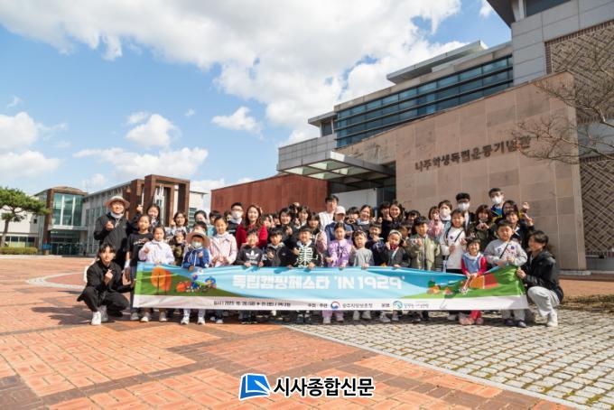 À̳¯ Çà»ç´Â ÃʵîÇлý Àڳฦ µÐ °¡Á·Ä·ÆÛ 30¿© ÆÀ°ú ÇÔ²² ³ªÁÖÇлýµ¶¸³¿îµ¿±â³ä°ü ޹æ ÈÄ ½ÂÃ̺¸ Ä·ÇÎÀåÀ¸·Î À̵¿ÇÏ¿© µ¶¸³ÃÌ ²Ù¹Ì±â, µ¶¸³ÆÛ·¹À̵å, Çлýµ¶¸³¿îµ¿ ÀçÇö±Ø, µ¶¸³¸¶¼ú, °¨¼º¹ö½ºÅ· µî ´Ù¾çÇÑ µ¶¸³¹®ÈÇà»ç°¡ ÁøÇàµÇ¾ú´Ù.