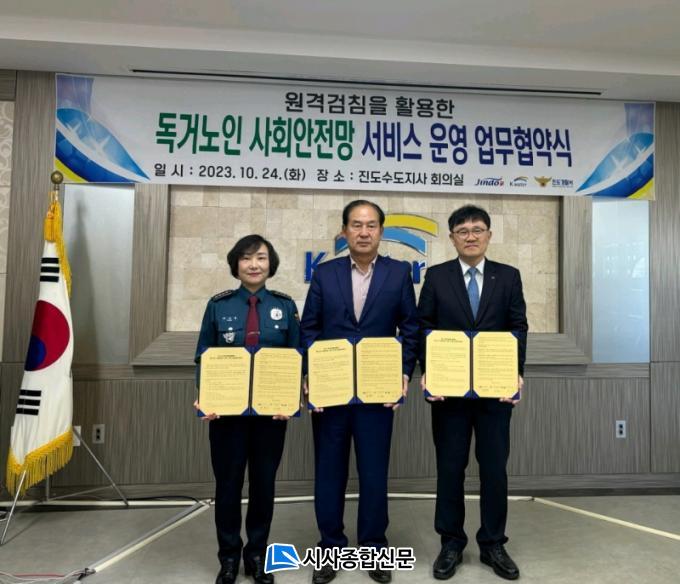 À̳¯ Áøµµ°æÂû¼Àå ¹× Áøµµ±º¼ö, Çѱ¹¼öÀÚ¿ø°ø»ç ÁøµµÁö»çÀå µîÀÌ Âü¼®ÇÏ¿© µ¶°Å³ëÀÎÀÇ ¾ÈÀüÀ» À§ÇØ °øµ¿Ã¼ Ä¡¾È¼ºñ½º Á¦°ø¿¡ ÃÖ¼±À» ´ÙÇϱâ·Î ¾à¼ÓÇß´Ù.