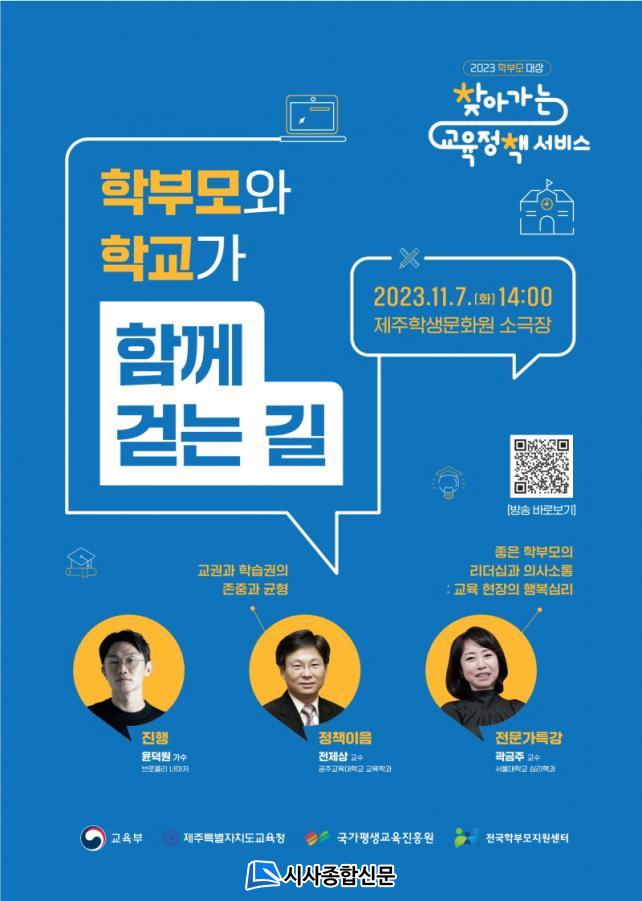 [½Ã»çÁ¾ÇսŹ® = °í¼º¹Î ±âÀÚ] Á¦ÁÖÆ¯º°ÀÚÄ¡µµ±³À°Ã»(±³À°°¨ ±è±¤¼ö)Àº ¿À´Â 11¿ù 7ÀÏ(È) Á¦ÁÖÇлý¹®È¿ø¼Ò±ØÀå¿¡¼ Á¦ÁÖµµ³» Çкθð ¹× Èñ¸Á ±³Á÷¿øÀ» ´ë»óÀ¸·Î ¡®Çкθð¿Í Çб³°¡ ÇÔ²² °È´Â ±æ¡¯À» ÁÖÁ¦·Î Ư°À» ÁøÇàÇÑ´Ù°í ¹àÇû´Ù.