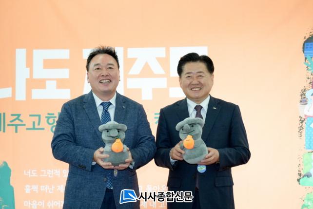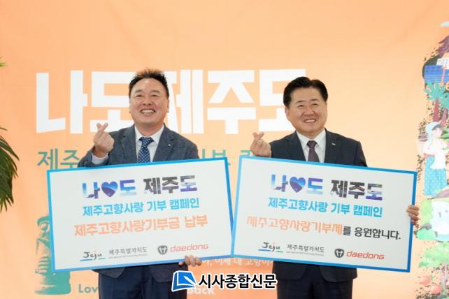 ¿À¿µÈÆ Á¦ÁÖµµÁö»ç¿Í ¿øÀ¯Çö ´ëµ¿±×·ì ´ëÇ¥ÀÌ»ç´Â À̳¯ Çà»çÀå¿¡¼ Á÷¿øµé¿¡°Ô Á÷Á¢ ÄûÁ ³»°í ±â³äǰÀ» ÁõÁ¤ÇÏ´Â ±ô¦ À̺¥Æ®¸¦ ÇÔ²² Çϸç Á¦ÁÖ °íÇâ»ç¶û±âºÎ È«º¸¿¡ ³ª¼¹´Ù. ¿À Áö»ç´Â ¡°Á¦ÁÖ¿Í ¸¶À½ÀÇ °íÇâÀ» ¸Î¾îÁֽŠ´ëµ¿±×·ì ÀÓÁ÷¿ø ¿©·¯ºÐ²² °í¸¶¿î ¸¶À½À» ÀüÇÑ´Ù¡±¸ç ¡°Èûµé ¶§³ª ÁÁÀº ÀÏÀÌ ÀÖÀ» ¶§ °íÇâ Á¦ÁÖ¸¦ ¹æ¹®Çϸé Á¦ÁÖµµ¹Îµé°ú ÇÔ²² ´Ã ¹Ý±â°Ú´Ù¡±°í ¸»Çß´Ù.