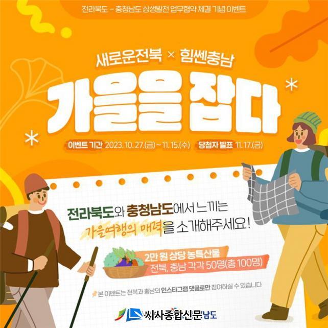 ¡®»õ·Î¿î ÀüºÏ ¡¿ Èû¼¾Ãæ³², °¡À»À» Àâ´Ù¡¯¶ó´Â ÁÖÁ¦·Î ±âȹµÈ À̹ø À̺¥Æ®´Â 27ÀϺÎÅÍ 11¿ù 15ÀϱîÁö ÀüºÏµµ¿Í Ãæ³²µµ °ø½Ä ÀνºÅ¸±×·¥ °èÁ¤¿¡¼ µ¿½Ã ÁøÇàµÈ´Ù.