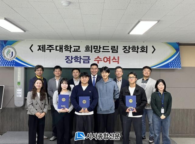 [½Ã»çÁ¾ÇսŹ® = °í¼º¹Î ±âÀÚ] Á¦ÁÖ´ëÇб³ Èñ¸Áµå¸²ÀåÇÐȸ(ȸÀå ±èÀçÈñ)´Â Áö³ 26ÀÏ È¸°èÇаú 3Çг⠰í´ë¿µ ¾¾ µî 5¸í¿¡°Ô °¢ 100¸¸¿ø ¾¿ ÃÑ 500¸¸¿øÀÇ ÀåÇбÝÀ» Àü´ÞÇß´Ù.