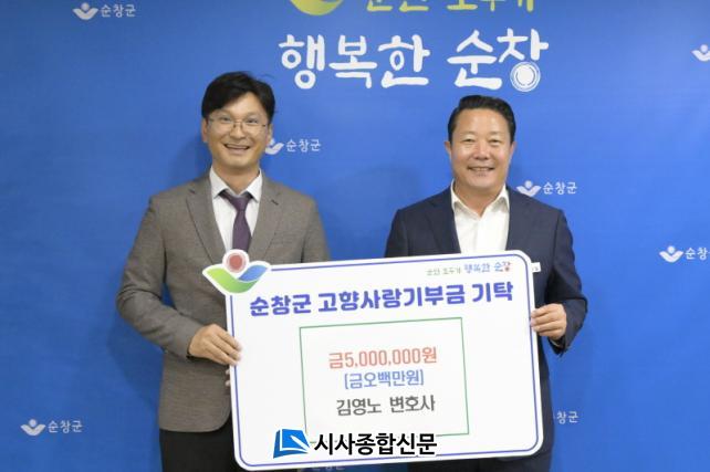 [½Ã»çÁ¾ÇսŹ® = ±è¿¬Èñ ±âÀÚ] ¼øÃ¢±ºÀº 30ÀÏ ÀüºÏ ³²¿ø½Ã¿¡¼ ¹ý·ü»ç¹«¼Ò¸¦ ¿î¿µÇϰí ÀÖ´Â ±è¿µ³ë º¯È£»ç°¡ °íÇâ»ç¶û±âºÎ±Ý °³ÀÎ ÃÖ°í¾×ÀÎ 500¸¸¿øÀ» ±âŹÇß´Ù°í ¹àÇû´Ù.