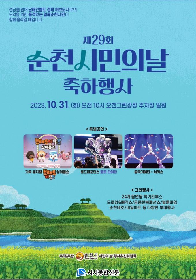 ³ë°ü±Ô ¼øÃµ½ÃÀåÀº °æÀü¼± µµ½É ¿ìȸ¿Í ¹Ú¶÷ȸ µî ¿À´ÃÀÌ ÀÖ±â±îÁö ¡°¼øÃµ½Ã¹ÎÀÌ ÇÔ²² ÀÖ¾ú±â¿¡ °¡´ÉÇß´Ù¡±¶ó¸ç¡°À̹ø ½Ã¹ÎÀÇ ³¯ ÃàÇÏÇà»ç´Â ¹Ú¶÷ȸ Æó¸·½Ä°ú ¿¬°èÇØ 28¸¸ ¼øÃµ½Ã¹Î¿¡°Ô °¨»çÇÑ ¸¶À½À» ÀüÇÏ´Â ½Ã¹ÎÈÇÕÇѸ¶´çÀ¸·Î ÁغñÇÑ ¸¸Å ½Ã¹Î ¸ðµÎ°¡ Âü¿©ÇÏ´Â ÃàÁ¦ÀÇ ÀåÀÌ µÇ±æ ¹Ù¶õ´Ù¡±¶ó°í ¸»Çß´Ù.