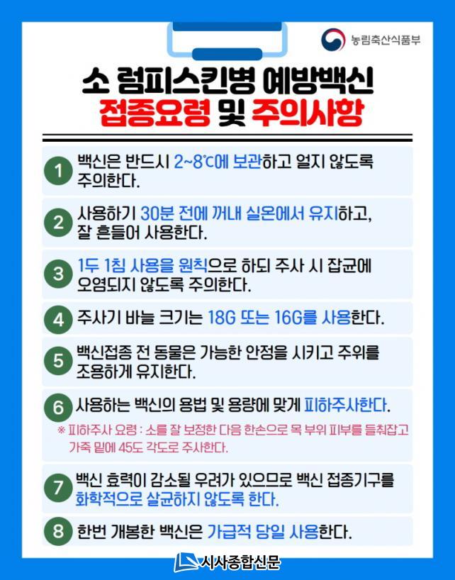 ¹é½ÅÀ» °ø±Þ¹ÞÀº ³ó°¡´Â ¹é½ÅÁ¦Á¶»çÀÇ »ç¿ë¼³¸í¼¸¦ È®ÀÎÇØ »çÀ°Çϰí ÀÖ´Â ¸ðµç ¼Ò¿¡ ´ëÇØ Á¢Á¾ÇØ¾ß Çϸç, Á¢Á¾ °³Ã¼¿¡ ´ëÇÑ Á¢Á¾³»¿ªÀ» ±â·Ï¡¤°ü¸® ÇØ¾ß ÇÑ´Ù.ƯÈ÷ ·³ÇǽºÅ²º´ ¹é½ÅÀº Á¢Á¾¹æ¹ýÀÌ ÇÇÇÏÁ¢Á¾(ÇÇºÎ¿Í ±ÙÀ° »çÀÌ¿¡ Á¢Á¾)À¸·Î ¿Ã¹Ù¸¥ ¸é¿ªÇü¼ºÀ» À§ÇØ ¹Ýµå½Ã Çdz»Á¢Á¾¹ýÀ¸·Î Á¢Á¾ÇØ¾ß ÇÑ´Ù.(±ÙÀ°Á¢Á¾ µî ºÎÀûÀýÇÑ ¹æ¹ýÀ¸·Î Á¢Á¾ ½Ã ¸é¿ªÇü¼º ¾ÈµÊ)