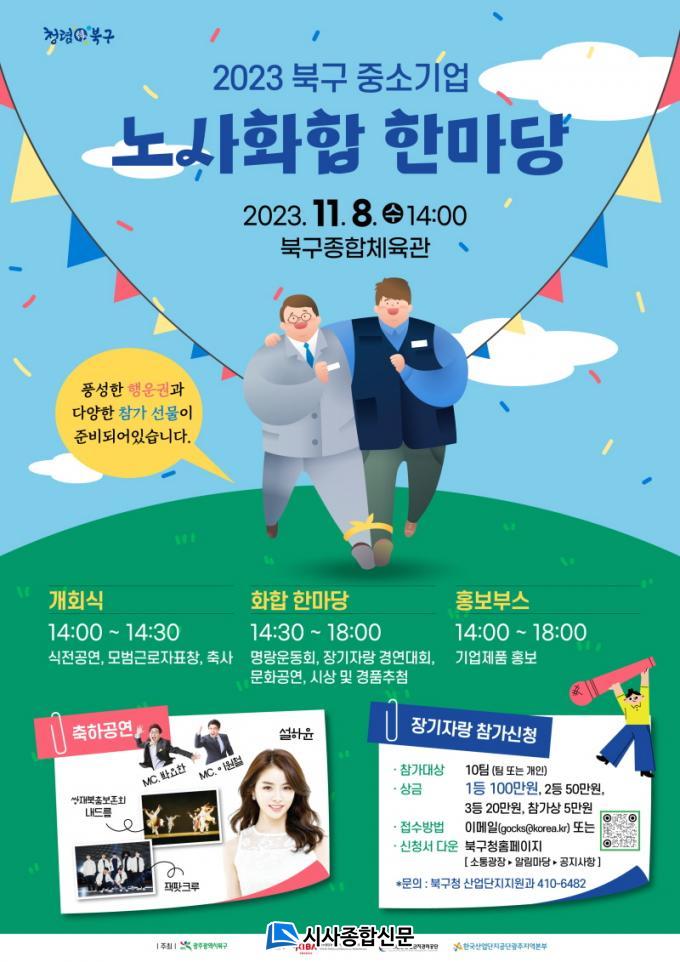 ºÏ±¸Á¾ÇÕüÀ°°ü¿¡¼ ¿¸®´Â À̹ø Çà»ç´Â ºÏ±¸ Áö¿ª Áß¼Ò±â¾÷ ÀÓ․Á÷¿ø 200¿© ¸íÀÌ Âü¿©ÇÑ °¡¿îµ¥ Çà»ç ´çÀÏ ¿ÀÈÄ 1½Ã 30ºÐºÎÅÍ 6½Ã±îÁö ½ÄÀü °ø¿¬, °³È¸½Ä, ÈÇÕ ÇѸ¶´ç ÇÁ·Î±×·¥ÀÌ Â÷·Ê´ë·Î ÁøÇàµÈ´Ù.