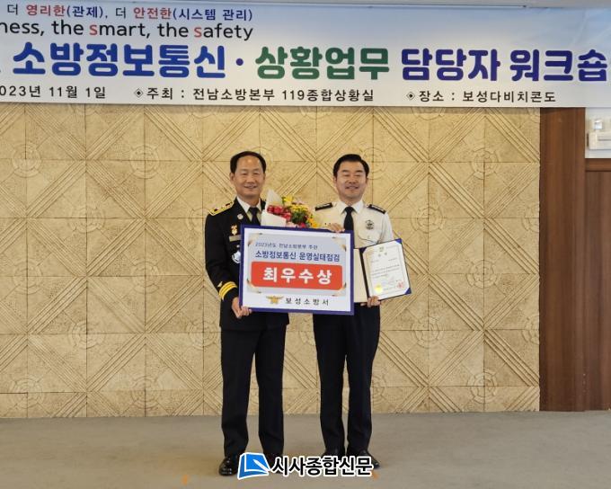 [½Ã»çÁ¾ÇսŹ® = ¿À½ÂÅà ±âÀÚ] º¸¼º¼Ò¹æ¼(¼Àå Á¤¿ëÀÎ)´Â 1ÀÏ Àü³²¼Ò¹æº»ºÎ¿¡¼ ÁÖ°üÇÑ ¡®2023³â Á¤º¸Åë½Å ¿î¿µ½ÇÅÂÁ¡°Ë¡¯¿¡¼ ÃÖ¿ì¼ö»óÀ» ¼ö»óÇß´Ù.