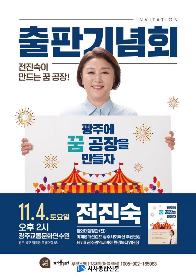 [½Ã»çÁ¾ÇսŹ® = ¿À½ÂÅà ±âÀÚ] ±¤ÁÖ±³Å빮ȿ¬¼ö¿ø¿¡¼ ºû°íÀ»ºñÀüâÀÛ¼Ò ÀÌ»çÀå ÀüÁø¼÷(Àü û¿Í´ë ÇàÁ¤°ü)ÀÇ µÎ ¹øÂ° Ã¥ <±¤ÁÖ¿¡ ²Þ °øÀåÀ» ¸¸µéÀÚ>(ÆÛºí¸®Æ¼)ÀÇ ÃâÆÇ±â³äȸ°¡ ¿¸°´Ù. ÀÌ Ã¥Àº ÀüÁø¼÷ ÀÌ»çÀåÀÌ »ý°¢ÇÏ´Â ±¤ÁÖ ºÏ±¸ÀÇ ¹Ì·¡ ºñÀü°ú ÀÚ½ÅÀÇ »îÀÇ ³ëÁ¤À» ´ãÀº Ã¥ÀÌ´Ù.