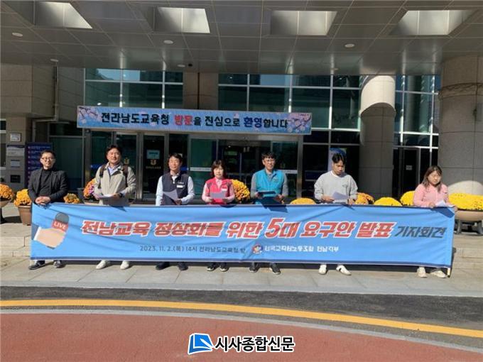 ±âÀÚȸ°ß Âü°¡ÀÚµéÀº ±âÀÚȸ°ß¹®À» ÅëÇØ ±³±Çº¸È£ ÀÇÁö ¾ø°í, ±³»ç Á¤¿ø °¨Ãà¿¡´Â ¹«´ëÃ¥ÀÎ Àü³²±³À°Ã»À» ±ÔźÇϰí, Àü³²±³À° Á¤»óȸ¦ À§ÇÑ 5´ë ¿ä±¸¾ÈÀ» ¹ßÇ¥ÇÏ¿´´Ù.