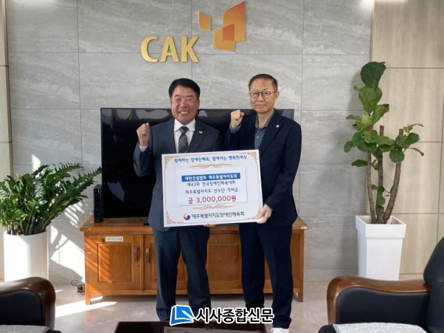 [½Ã»çÁ¾ÇսŹ® = °í¼º¹Î ±âÀÚ] ´ëÇѰǼ³Çùȸ Á¦ÁÖÆ¯º°ÀÚÄ¡µµÈ¸(ȸÀå ±è±âÃá)´Â Áö³ 1ÀÏ Á¦ÁÖÆ¯º°ÀÚÄ¡µµÀå¾ÖÀÎüÀ°È¸(ȸÀå ¿À¿µÈÆ)¿¡ °Ý·Á ¼º±Ý 300¸¸¿øÀ» Àü´ÞÇß´Ù.