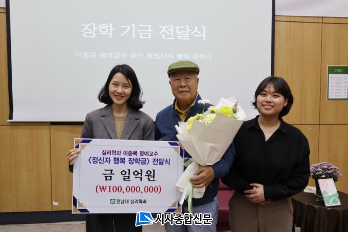 Àü³²´ë ÀÌÁ¾¸ñ ¸í¿¹±³¼ö(½É¸®Çаú)´Â 11¿ù 3ÀÏ ½É¸®Çаú¿¡ ÀåÇÐ±Ý 1¾ï ¿øÀ» ±âºÎÇϰí, ÀÌ ÀåÇбâ±ÝÀ» ¾Æ³»ÀÇ À̸§À» µý ¡®Á¤½ÅÀÚ Çູ ÀåÇбݡ¯À¸·Î ¸í¸íÇØ ÇлýµéÀ» À§ÇØ ½á ÁÙ °ÍÀ» ´çºÎÇß´Ù.