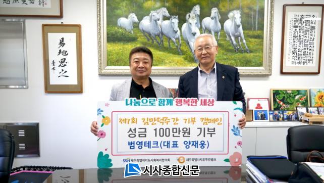 [½Ã»çÁ¾ÇսŹ® = °í¼º¹Î ±âÀÚ] ¾çÀç¿õ ¹ü¿µÅ×Å© ´ëÇ¥´Â ÃÖ±Ù Á¦ÁÖÆ¯º°ÀÚÄ¡µµ»çȸº¹ÁöÇùÀÇȸ(ȸÀå °í½ÂÈ)¡ºÁ¦7ȸ ±è¸¸´öÁÖ°£ ³ª´®±â°ü °øµ¿±âºÎ Ä·ÆäÀΡ»¿¡ µ¿ÂüÇÏ°í ¼º±Ý 100¸¸¿øÀ» Àü´ÞÇß´Ù.