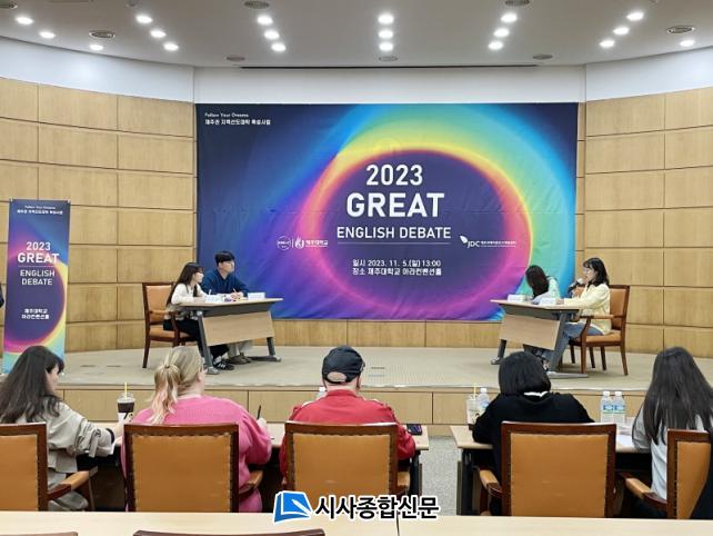 Á¦ÁÖ´ëÇб³ Áö¿ª¼±µµ´ëÇÐ À°¼º»ç¾÷´Ü(´ÜÀå ±èÀçÈÆ, ºÐÀÚ»ý¸í°øÇÐÀü°ø ±³¼ö)Àº '2023 GREAT ENGLISH DEBATE¡®(ÀÌÇÏ ¿µ¾îÅä·Ð´ëȸ)¸¦ Áö³ 5ÀÏ Á¦ÁÖ´ë¿¡¼ °³ÃÖÇß´Ù.