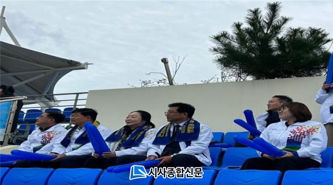 ¸ñÆ÷½ÃÀÇȸ ±âȹº¹ÁöÀ§¿øÈ¸´Â À̹ø ´ëȸ¿¡ Ã౸°æ±âÀåÀ» ¹æ¹®ÇÏ¿© Àü±¹¿¡¼ ¹æ¹®ÇÑ ¼±¼ö´Ü¿¡ ´ëÇØ ÀÀ¿øÀüÀ» ÆîÃÄ ´«±æÀ» ²ø¾ú´Ù.