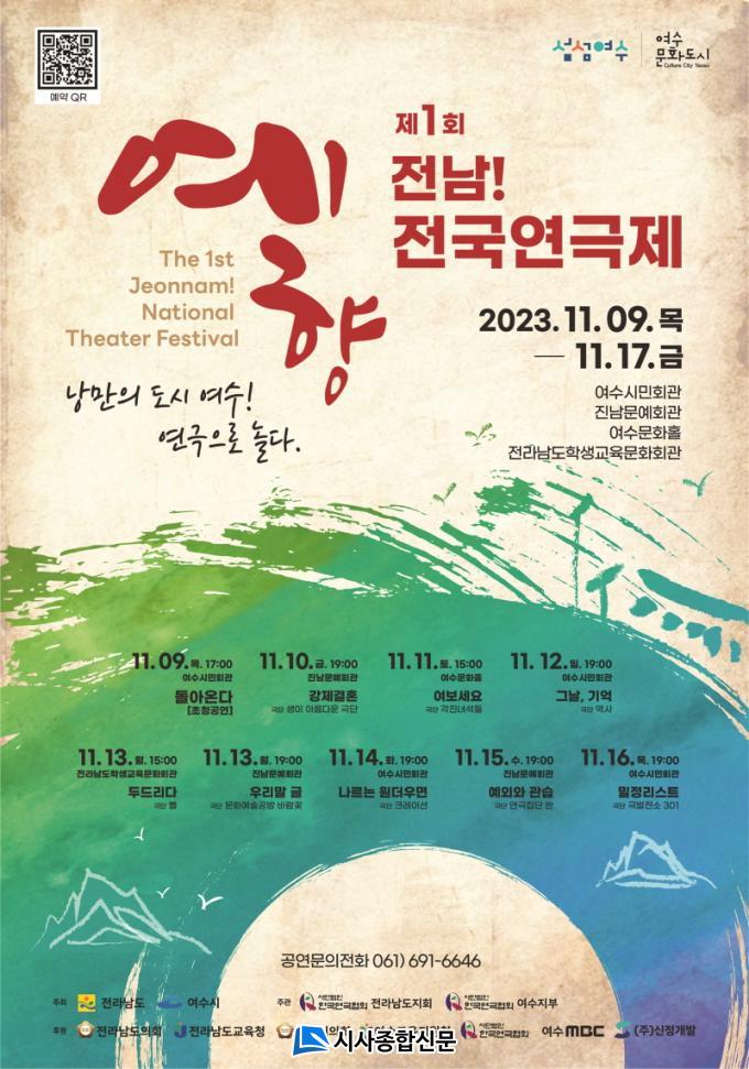 Àü¼® ¹«·á·Î ÁøÇàµÇ´Â Á¦1ȸ ¿¹Çâ Àü³²¿¬±ØÁ¦´Â 9ÀÏ ÃÊû°ø¿¬ ¡®µ¹¾Æ¿Â´Ù¡¯, 10ÀÏ »ýÀÌ ¾Æ¸§´Ù¿î ±Ø´ÜÀÇ ¡®°Á¦°áÈ¥¡¯, 12ÀÏ ±Ø´Ü ¿ª»ç ¡®±×³¯, ±â¾ï¡¯, 13ÀÏ ¹®È¿¹¼ú°ø¹æ ¹Ù¶÷²É ¡®¿ì¸®¸» ±Û¡¯, 14ÀÏ Å©·¹ÀÌ¼Ç ¡®³ª¸£´Â ¿ø´õ¿ì¸Õ¡¯, 15ÀÏ ¿¬±ØÁý´Ü ¹Ý ¡®¿¹¿Ü¿Í °ü½À¡¯, 16ÀÏ ±Ø¹ßÀü¼Ò 301 ¡®¹ÐÁ¤¸®½ºÆ®¡¯ ¼øÀ¸·Î ¿©¼ö½Ã¹Îȸ°ü°ú Áø³²¹®¿¹È¸°ü¿¡¼ °ø¿¬µÈ´Ù.