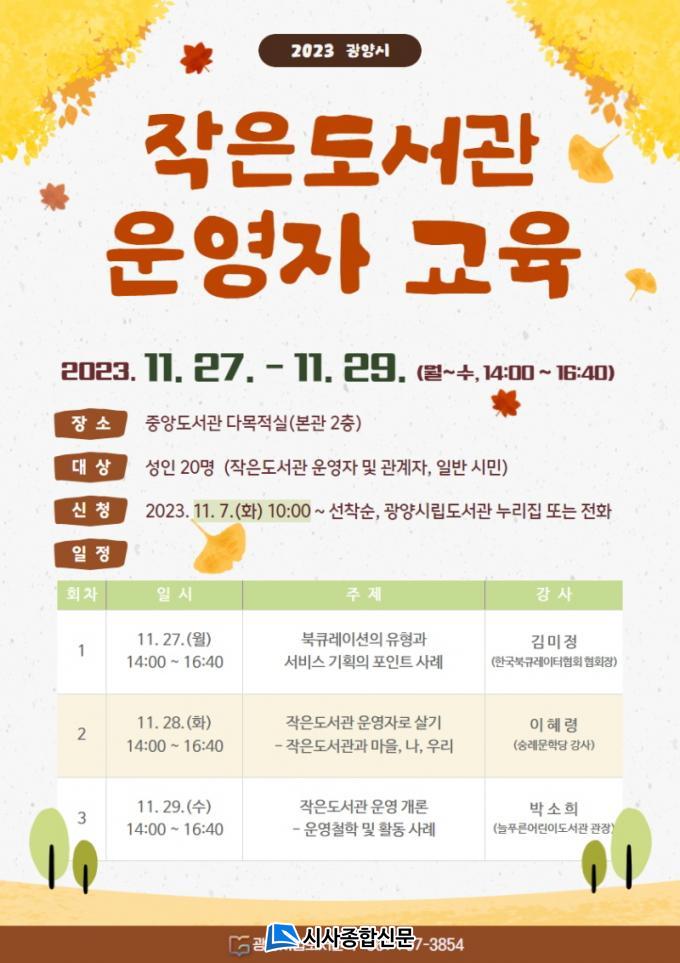 Áö¿ª ³» 35°³¼ÒÀÇ ÀÛÀºµµ¼°ü ¿î¿µÀÚ°¡ Âü¿©ÇÏ´Â À̹ø ¡®ÀÛÀºµµ¼°ü ¿î¿µÀÚ ¿ª·® °È ±³À°¡¯Àº Áö¿ª ³» ÀÛÀºµµ¼°ü ¹ßÀü°ú ¿î¿µÀÚÀÇ ¾÷¹« ¿ª·® °È¸¦ À§ÇÑ °ÍÀ¸·Î °ü°è Àü¹®°¡¸¦ ÃÊÃ»ÇØ ¿î¿µÇÑ´Ù.